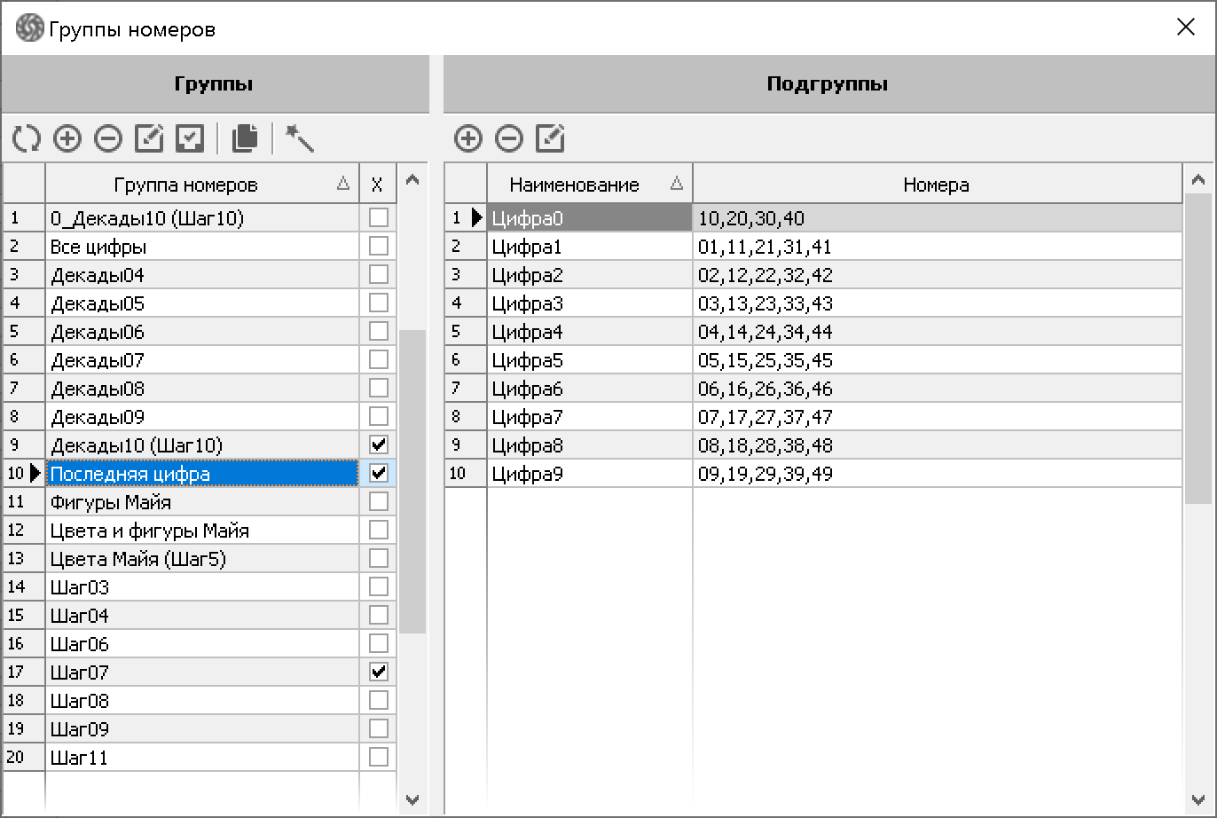 Для вызова инструмента нажмите кнопку «Группы номеров» на командной панели лотерей.